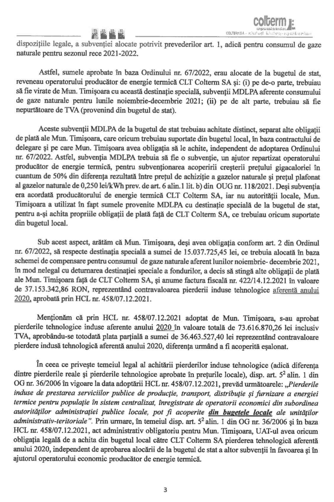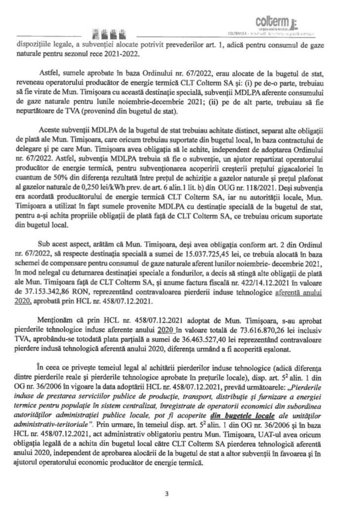 În ianuarie 2022, Guvernul României a aprobat, prin MDLPA, alocarea unor sume consistente de bani producătorilor de energie termică, pentru a-i despăgubi parțial de explozia prețului gazelor naturale din sezonul de iarnă 2021–2022. Unul dintre beneficiarii nominalizați, în anexele acestor ordine ministeriale, a fost COLTERM Timișoara. Explicit, direct, fără echivoc! Așa cum a fost justificat și rolul municipalității de pe Bega, în calitate de acționar al societății de termoficare. Doar acela de contabil intermediar, NU de beneficiar al sumelor! Doar că probele arată un tablou complet diferit. Mai exact, că sumele transferate de la bugetul de stat au ajuns în bugetul Primăriei Timișoara, dar nu și la operatorul căruia îi erau destinate prin lege.