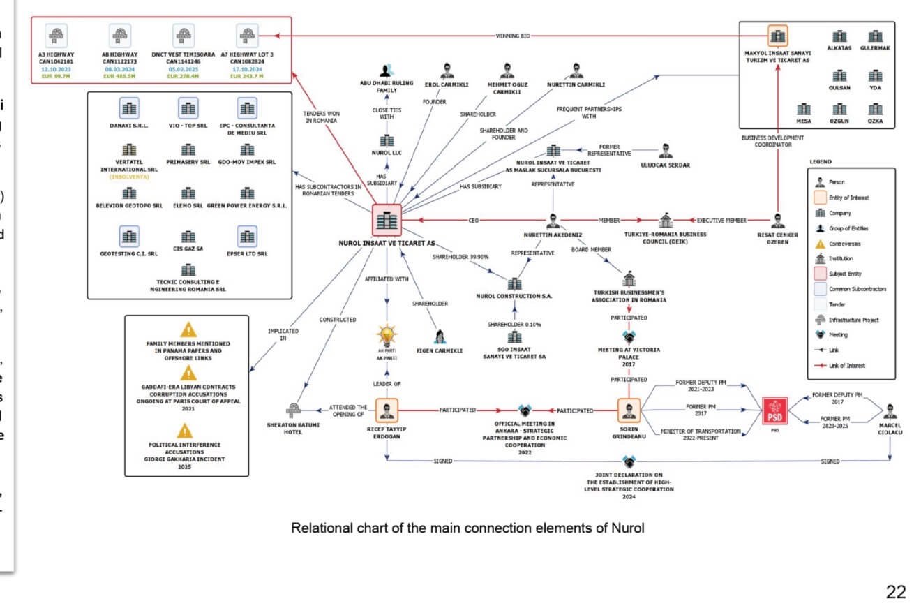 Și până data viitoare, când intrăm în investigațiile Oficiului European de Luptă Antifraudă (OLAF) și a celor de la Spălarea Banilor (ONPCSB), rămânem pe varianta ocolitoare de Vest a Timișoarei (13, 9 km, preț 1,41 miliarde lei) și pe autostrada A9 (segment Remetea Mare-Jebel, 36 km și o valoare de 5,65 miliarde), acolo unde turcii de la Nurol se pregătesc să intre în pâine, evident, cu agregate furnizate pe același lanț comercial Măran-Bejeriță. Pe scurt, așa cum rezultă din informații publice, cel puțin până la acest moment, companiile turcești (Nurol, Alsim Alarko, Makyol, Yapı Merkezi, Gülermak), consiliate de de fostul premier Victor Ponta prin societățile Mara Proje Danişmanlik AŞ (Turcia) si VP Project Advisers SRL (Romania), au câștigat lucrări de peste 6 miliarde de euro cu statul român.