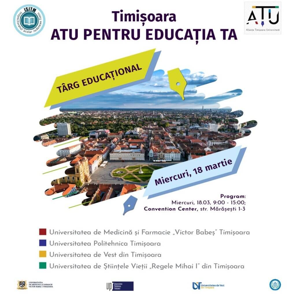Universitatea de Medicină și Farmacie „Victor Babeș” din Timișoara va fi prezentă cu stand la cea de-a IV-a ediție a târgului educațional „Timișoara ATU PENTRU EDUCAȚIA TA”, care va avea loc în data de 18.03.2026, între orele 09:00-15:00, în incinta Convention Center, str. Mărășești 1-3.